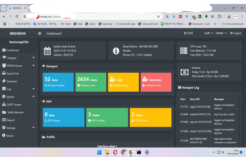 Masuk ke dashboard Mikhmon Online.